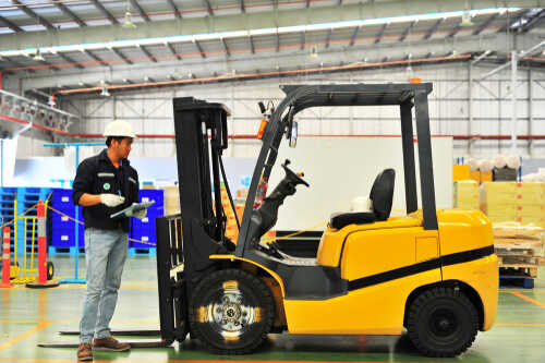 עובד שנתקל בשבר ברצפת בטון נפל על ברזלי מלגזה חונה ונחבל בידו